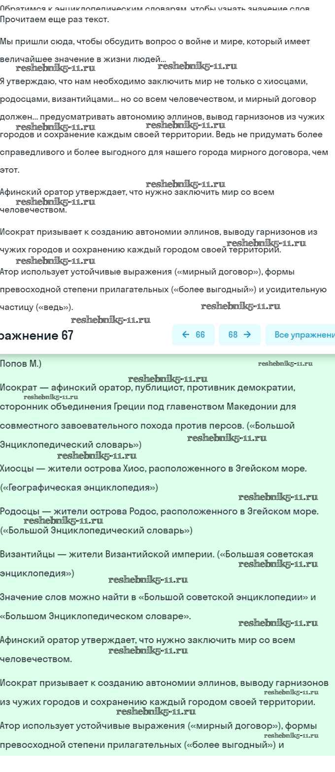 Русский язык за 7 класс Баранов Учебник Просвещение упражнение 67