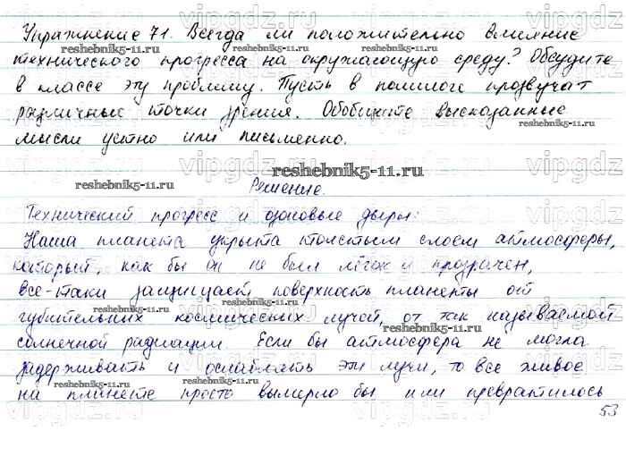 Готовая домашняя работа с ответами по Русскому языку за 7 класс Баранов, Ладыженская, Тростенцова Учебник УМК Просвещение 2015 ФГОС - Упражнения 71