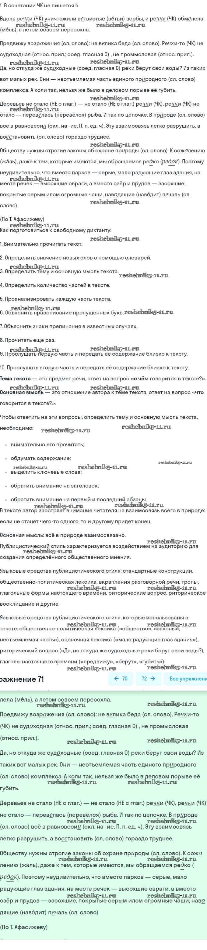 Готовая домашняя работа с ответами по Русскому языку за 7 класс Баранов, Ладыженская, Тростенцова Учебник Просвещение 2015 ФГОС - Упражнения 71