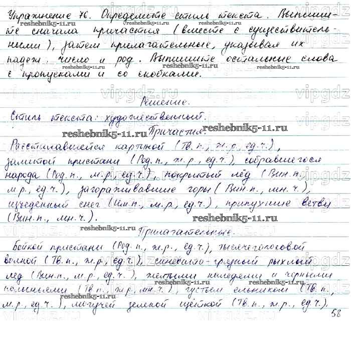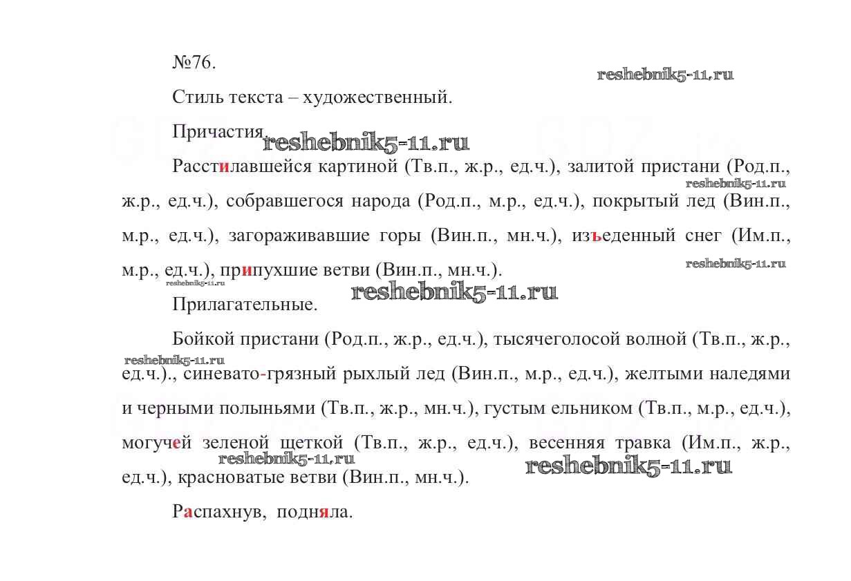 Готовая домашняя работа с ответами по Русскому языку за 7 класс Баранов, Ладыженская, Тростенцова Учебник УМК Просвещение 2015 ФГОС - Упражнения 76