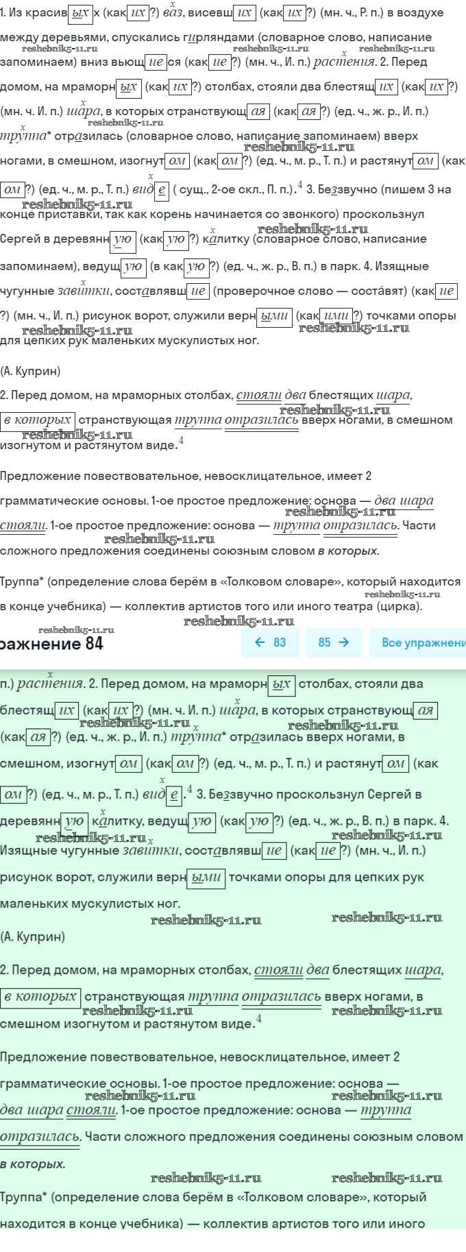 Русский язык за 7 класс Баранов Учебник Просвещение упражнение 84