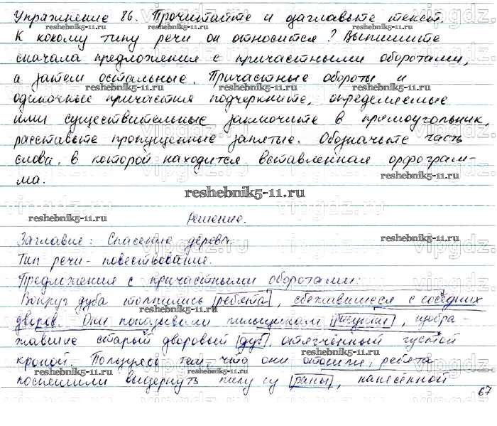 Готовая домашняя работа с ответами по Русскому языку за 7 класс Баранов, Ладыженская, Тростенцова Учебник УМК Просвещение 2015 ФГОС - Упражнения 86