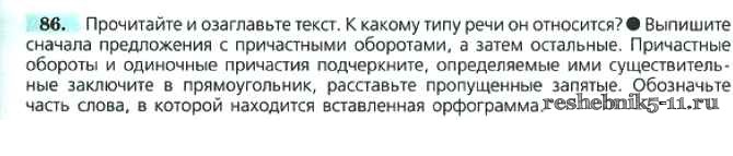 Русский язык за 7 класс Баранов Учебник УМК Просвещение упражнение 86