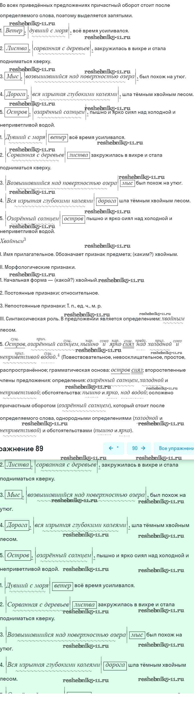 Готовая домашняя работа с ответами по Русскому языку за 7 класс Баранов, Ладыженская, Тростенцова Учебник Просвещение 2015 ФГОС - Упражнения 89