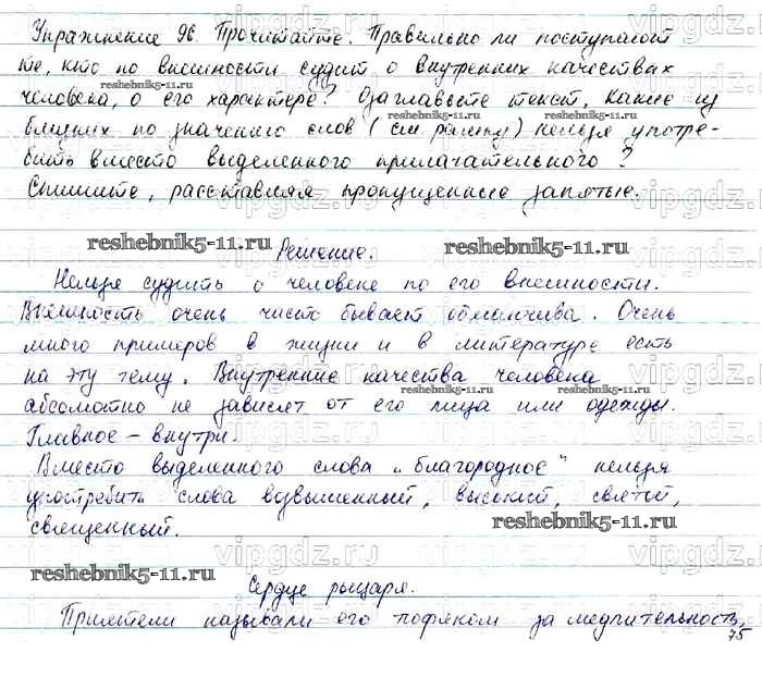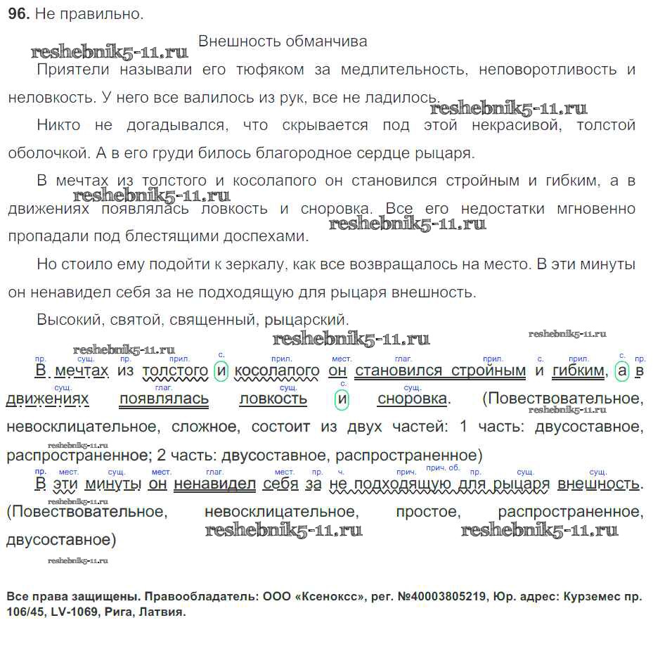 Готовая домашняя работа с ответами по Русскому языку за 7 класс Баранов, Ладыженская, Тростенцова Учебник УМК Просвещение 2015 ФГОС - Упражнения 96