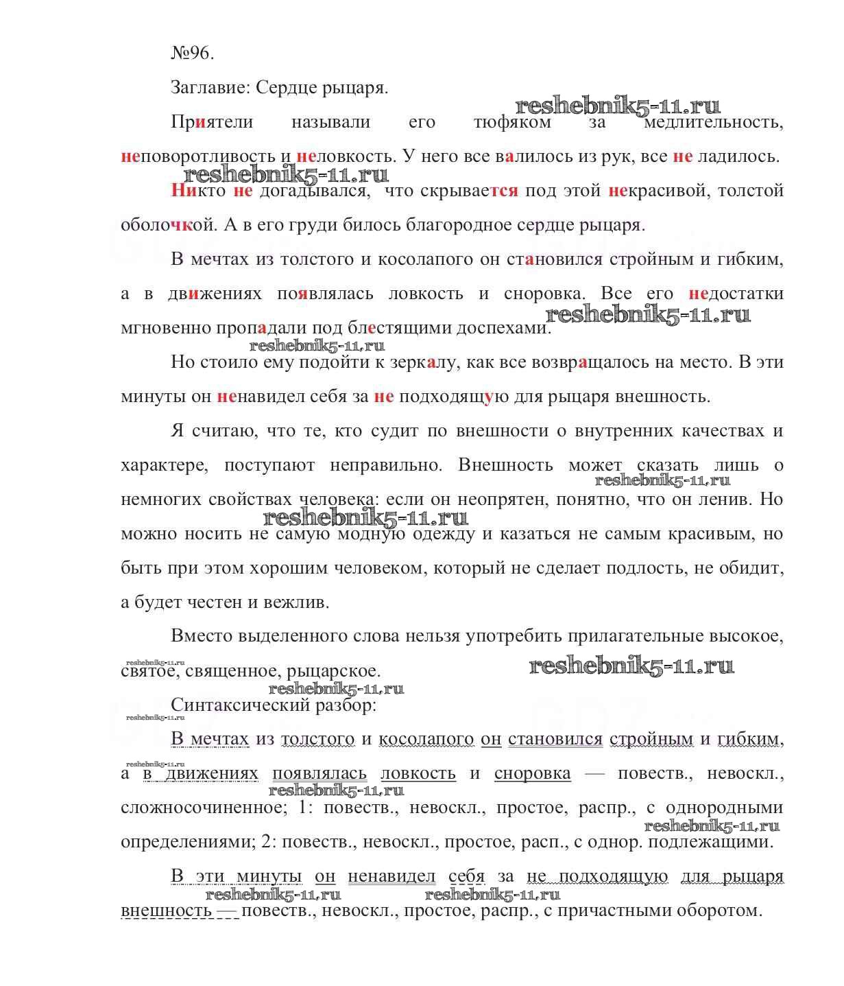 Русский язык за 7 класс Баранов Учебник УМК Просвещение упражнение 96