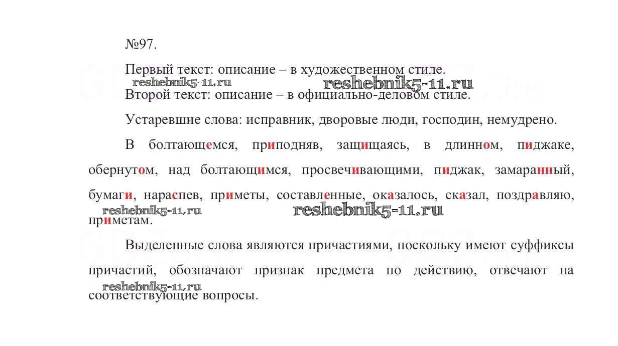 Русский язык за 7 класс Баранов Учебник УМК Просвещение упражнение 97