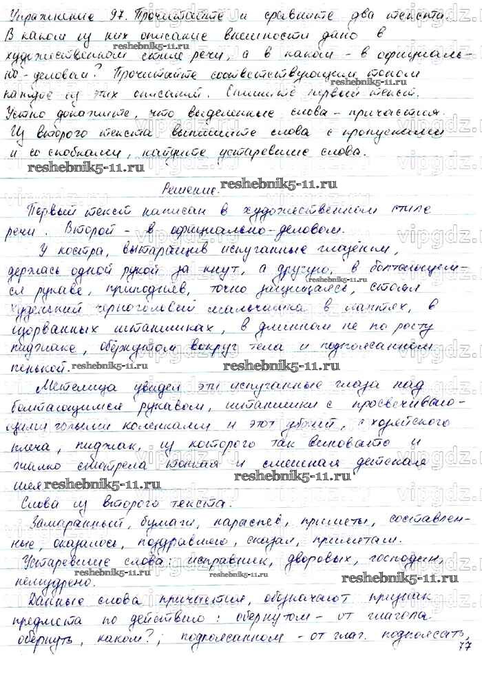 Готовая домашняя работа с ответами по Русскому языку за 7 класс Баранов, Ладыженская, Тростенцова Учебник УМК Просвещение 2015 ФГОС - Упражнения 97