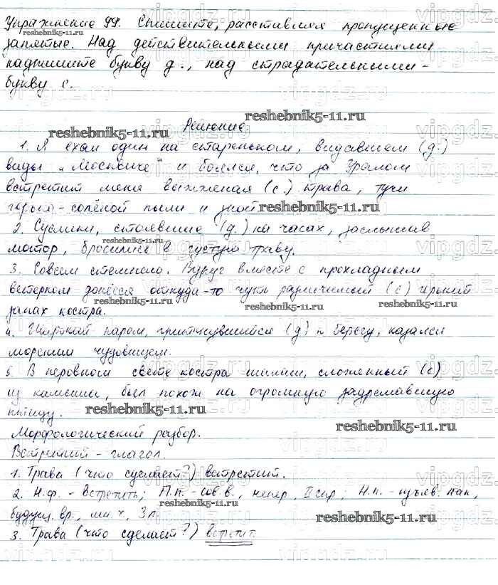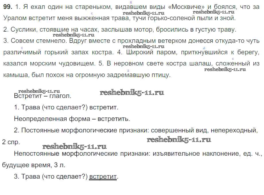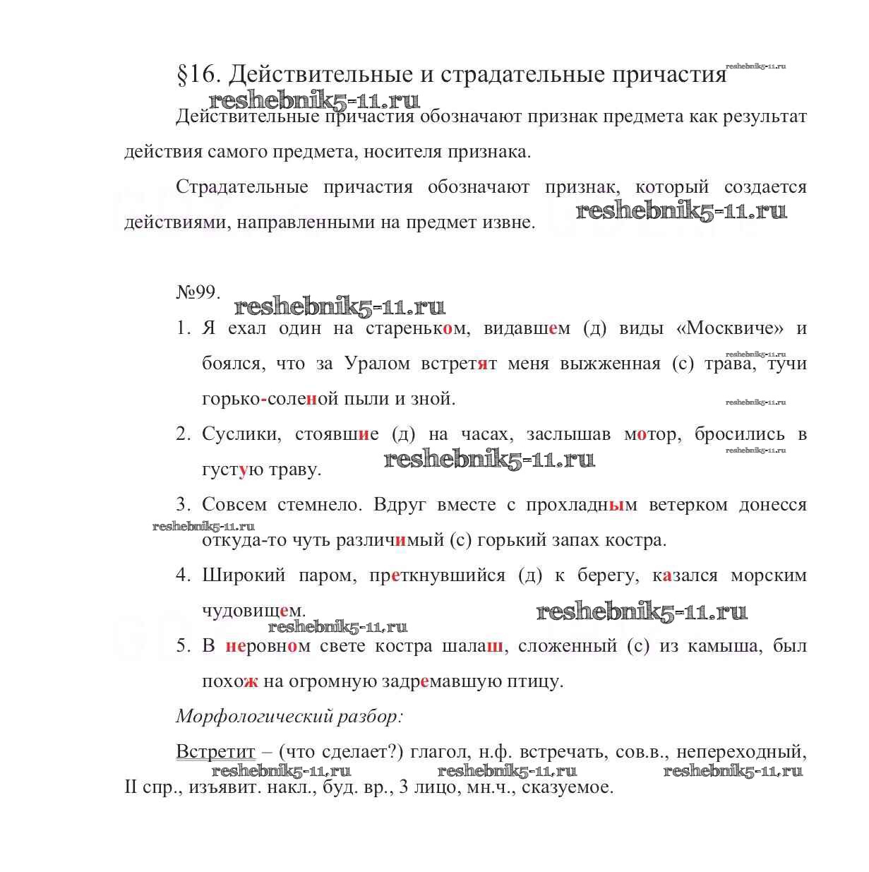 Готовая домашняя работа с ответами по Русскому языку за 7 класс Баранов, Ладыженская, Тростенцова Учебник УМК Просвещение 2015 ФГОС - Упражнения 99
