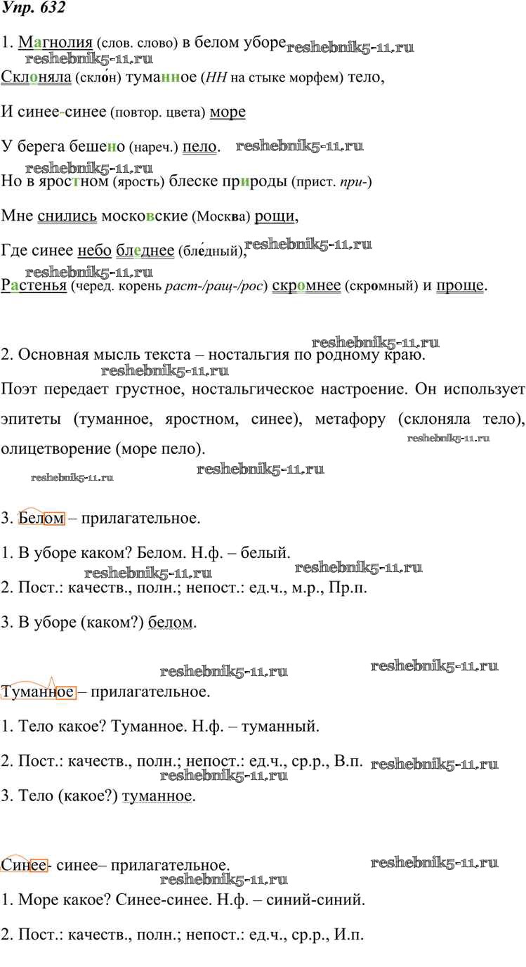 Готовая домашняя работа с ответами по Русскому языку за 7 класс Разумовская, Львова, Капинос, Львов, Сергеева, Соловейчик Учебник УМК Дрофа 2014 ФГОС - Упражнения 632