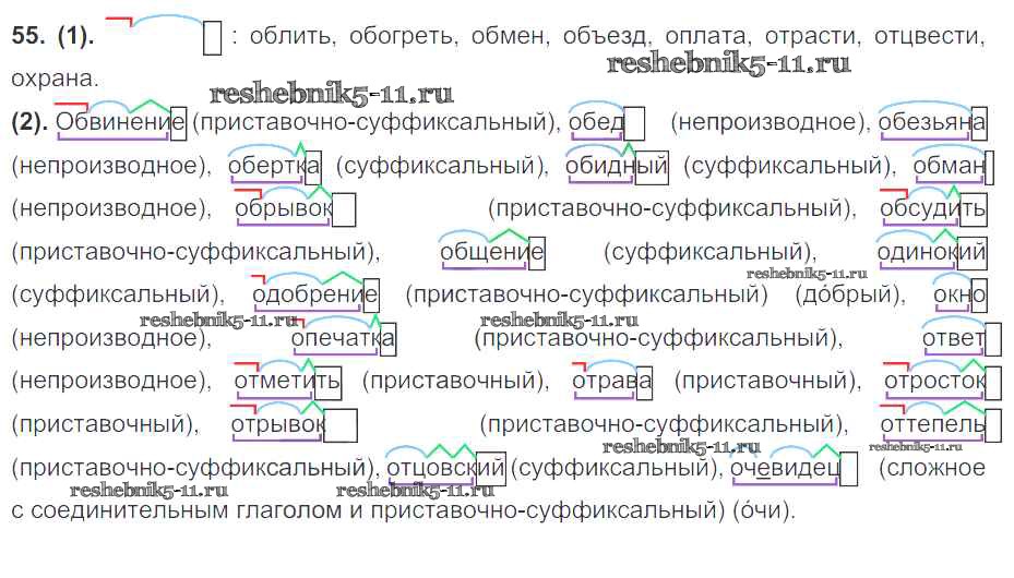 Готовая домашняя работа с ответами по Русскому языку за 7 класс Разумовская, Львова, Капинос, Львов, Сергеева, Соловейчик Учебник УМК Дрофа 2014 ФГОС - Упражнения 55