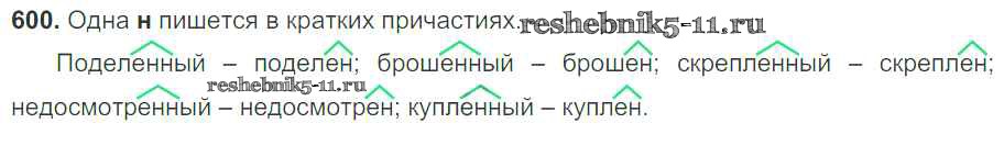 Готовая домашняя работа с ответами по Русскому языку за 7 класс Разумовская, Львова, Капинос, Львов, Сергеева, Соловейчик Учебник УМК Дрофа 2014 ФГОС - Упражнения 600
