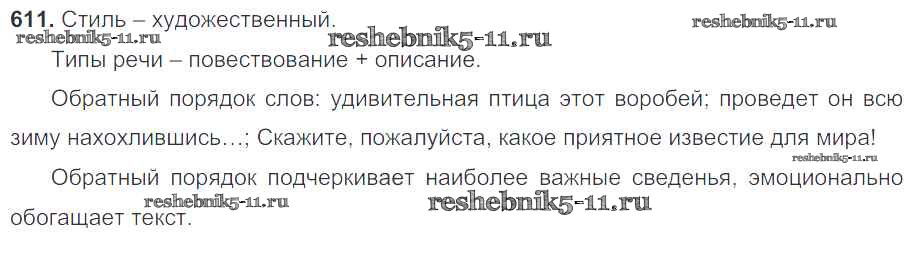 Русский язык за 7 класс Разумовская Учебник УМК Дрофа упражнение 611