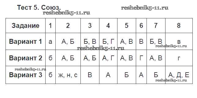 Готовая домашняя работа с ответами по Русскому языку за 7 класс Малюшкин, Иконницкая Тестовые задания Сферы Сфера 2020 ФГОС - Тестовые задания Тест №5. Союз
