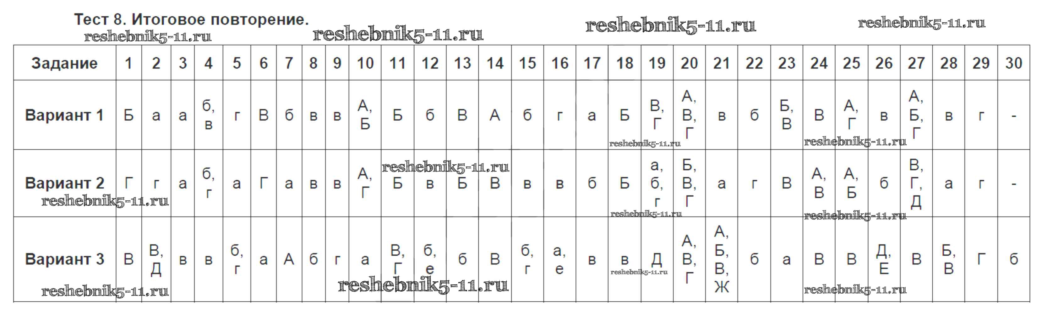 Готовая домашняя работа с ответами по Русскому языку за 7 класс Малюшкин, Иконницкая Тестовые задания Сферы Сфера 2020 ФГОС - Тестовые задания Тест №8. Итоговое повторение