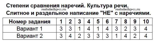 Готовая домашняя работа с ответами по Русскому языку за 7 класс Селезнева Тесты УМК Часть 1, 2 Экзамен 2014 ФГОС - Часть 2. Тесты Тест № 2. Степени сравнения наречий. Культура речи