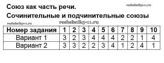 Готовая домашняя работа с ответами по Русскому языку за 7 класс Селезнева Тесты УМК Часть 1, 2 Экзамен 2014 ФГОС - Часть 2. Тесты Тест № 9. Союз как часть речи. Сочинительные и подчинительные союзы