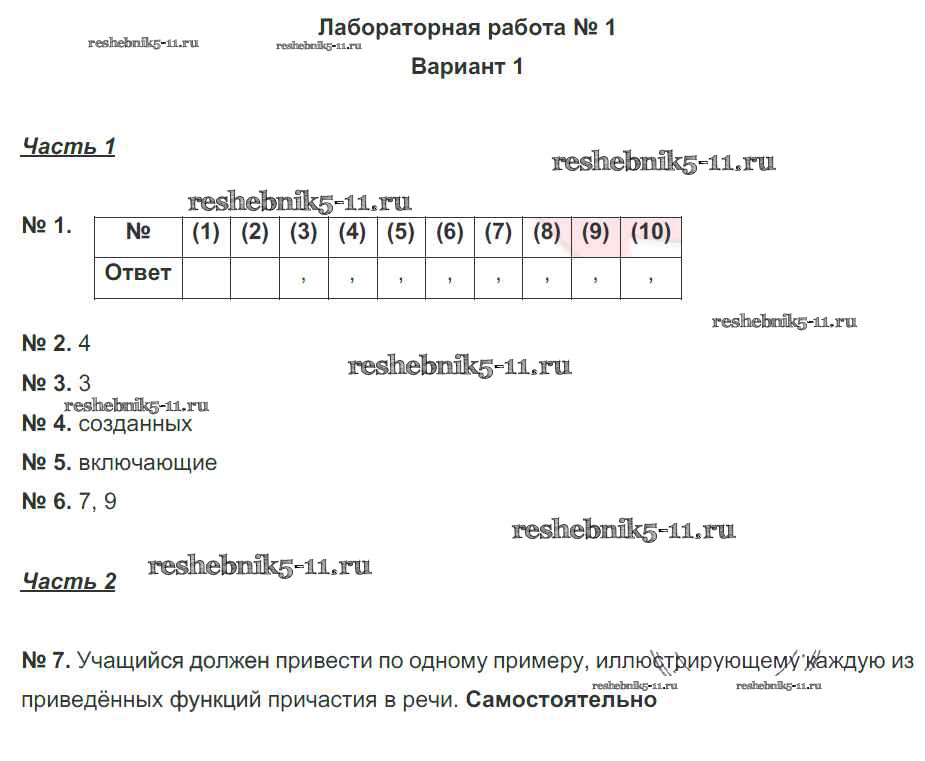 Готовая домашняя работа с ответами по Русскому языку за 7 класс Александров, Александрова Рабочая тетрадь Национальное образование 2018 ФГОС - Лабораторные работы 1. Варианты 1