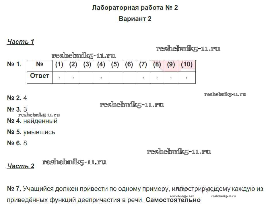 Готовая домашняя работа с ответами по Русскому языку за 7 класс Александров, Александрова Рабочая тетрадь Национальное образование 2018 ФГОС - Лабораторные работы 2. Варианты 2