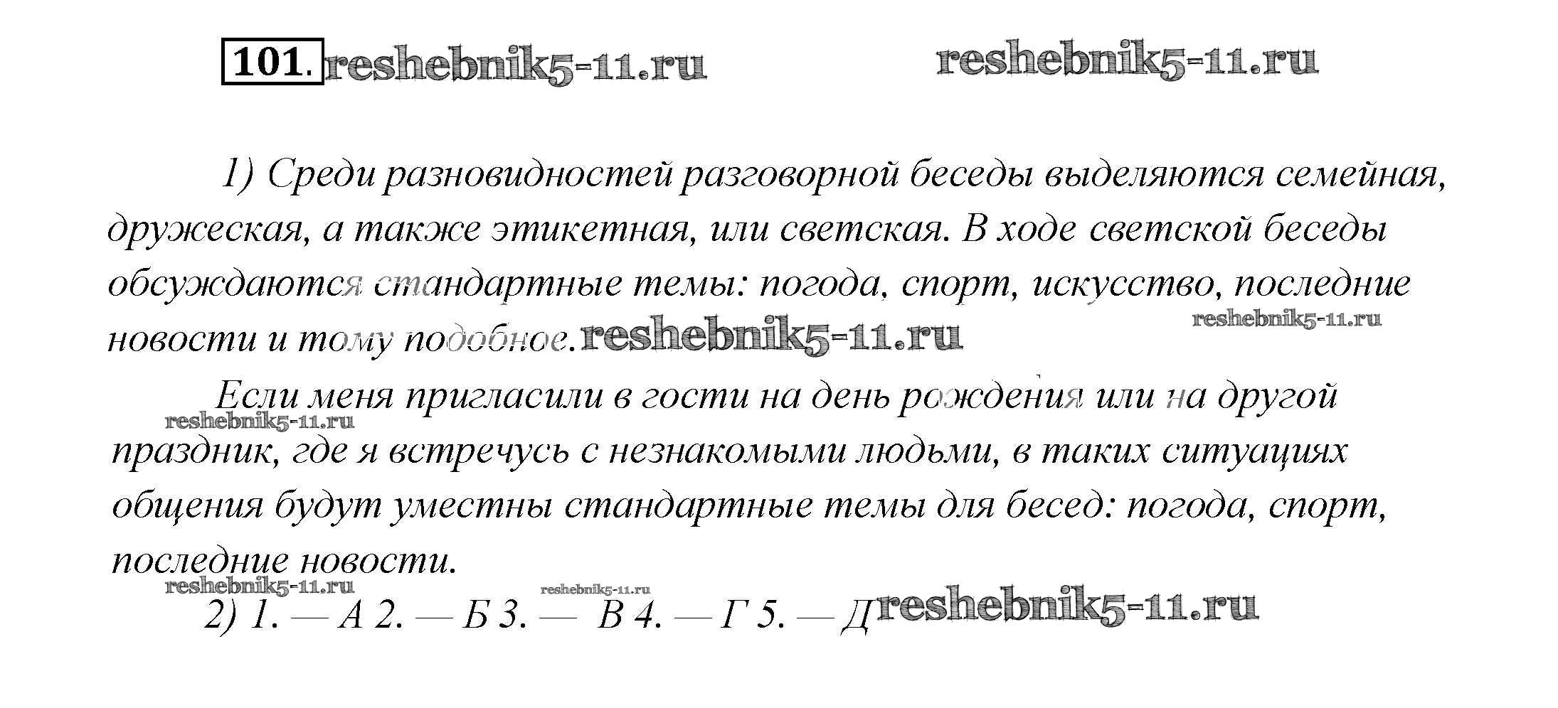 Готовая домашняя работа с ответами по Русскому языку за 7 класс Шмелёв, Флоренская, Савчук, Шмелёва Учебник Алгоритм успеха Вентана-граф 2016 ФГОС - Глава 1 101