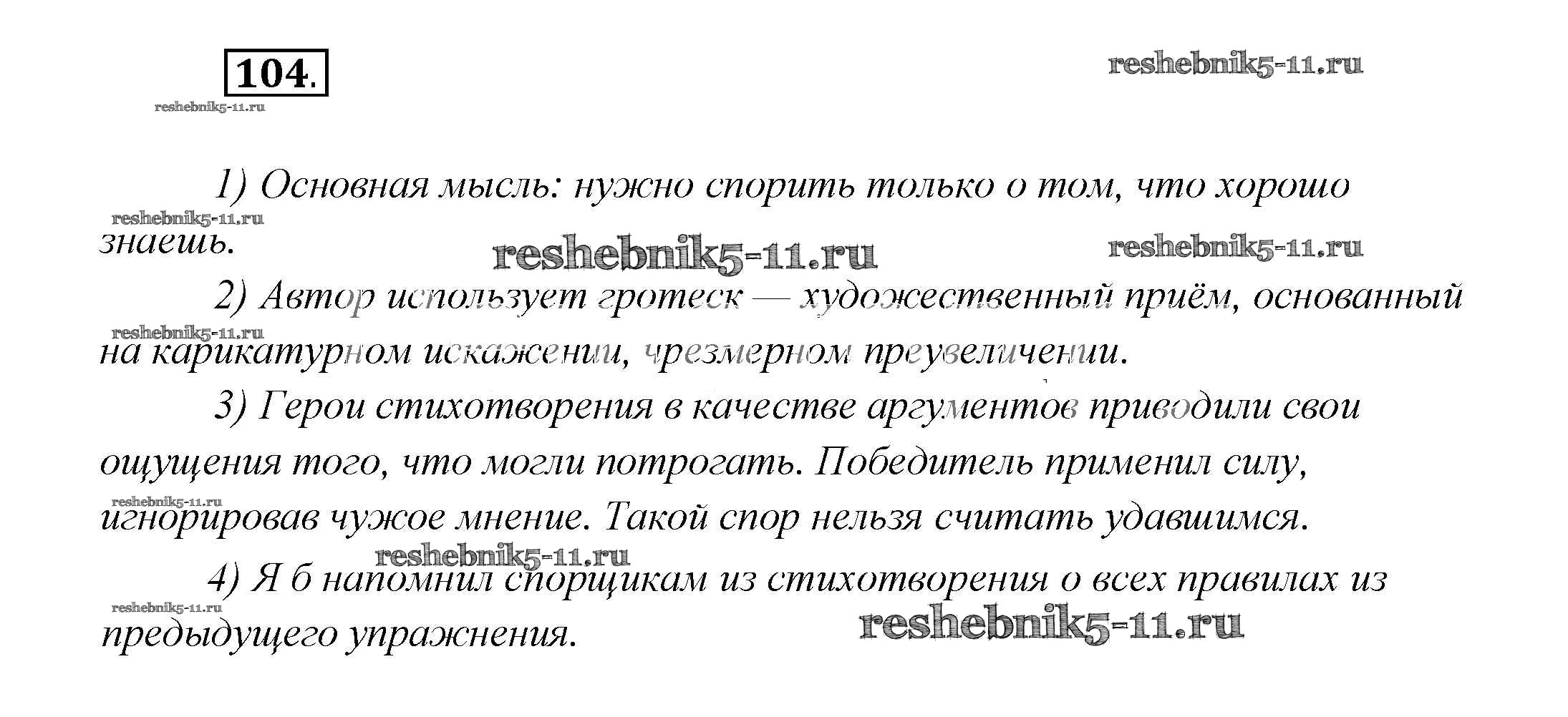 Готовая домашняя работа с ответами по Русскому языку за 7 класс Шмелёв, Флоренская, Савчук, Шмелёва Учебник Алгоритм успеха Вентана-граф 2016 ФГОС - Глава 1 104