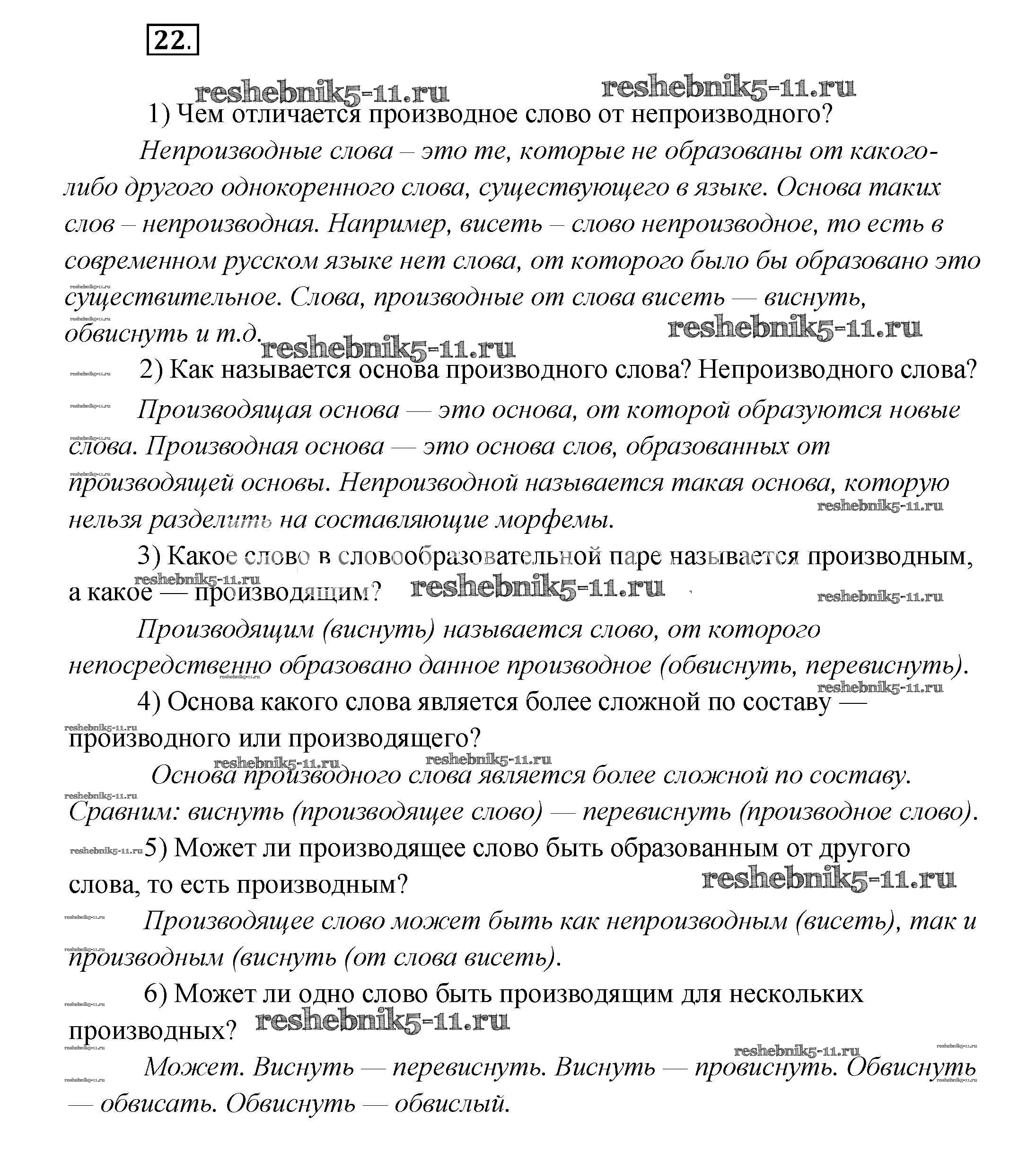 Готовая домашняя работа с ответами по Русскому языку за 7 класс Шмелёв, Флоренская, Савчук, Шмелёва Учебник Алгоритм успеха Вентана-граф 2016 ФГОС - Глава 1 22