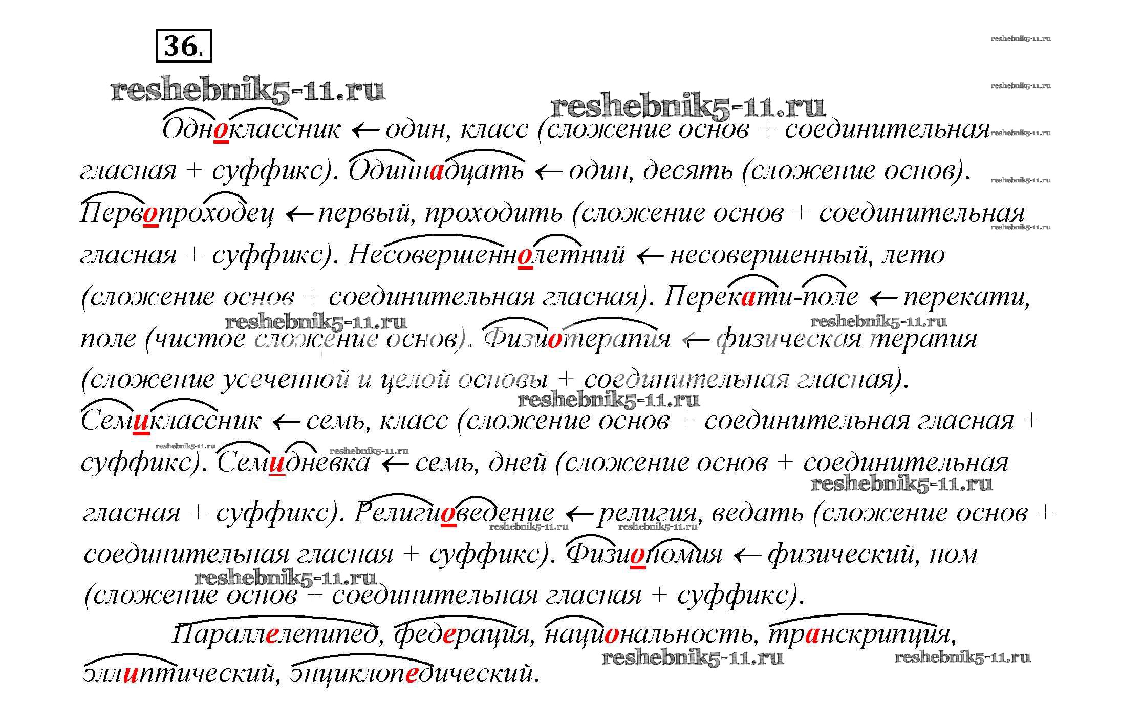 Готовая домашняя работа с ответами по Русскому языку за 7 класс Шмелёв, Флоренская, Савчук, Шмелёва Учебник Алгоритм успеха Вентана-граф 2016 ФГОС - Глава 1 36