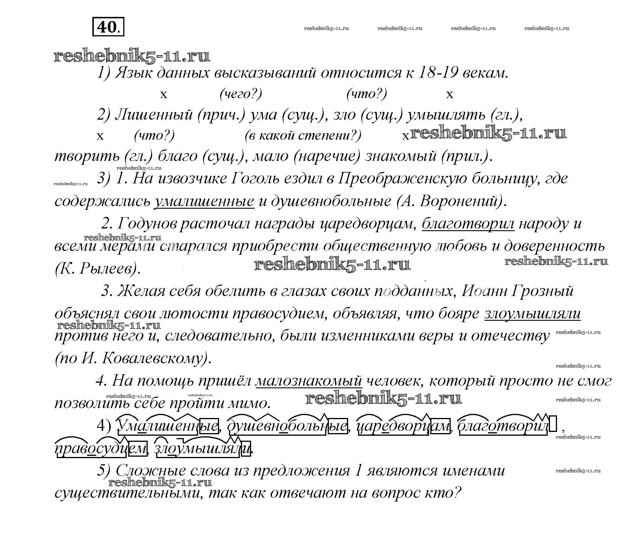 Готовая домашняя работа с ответами по Русскому языку за 7 класс Шмелёв, Флоренская, Савчук, Шмелёва Учебник Алгоритм успеха Вентана-граф 2016 ФГОС - Глава 1 40