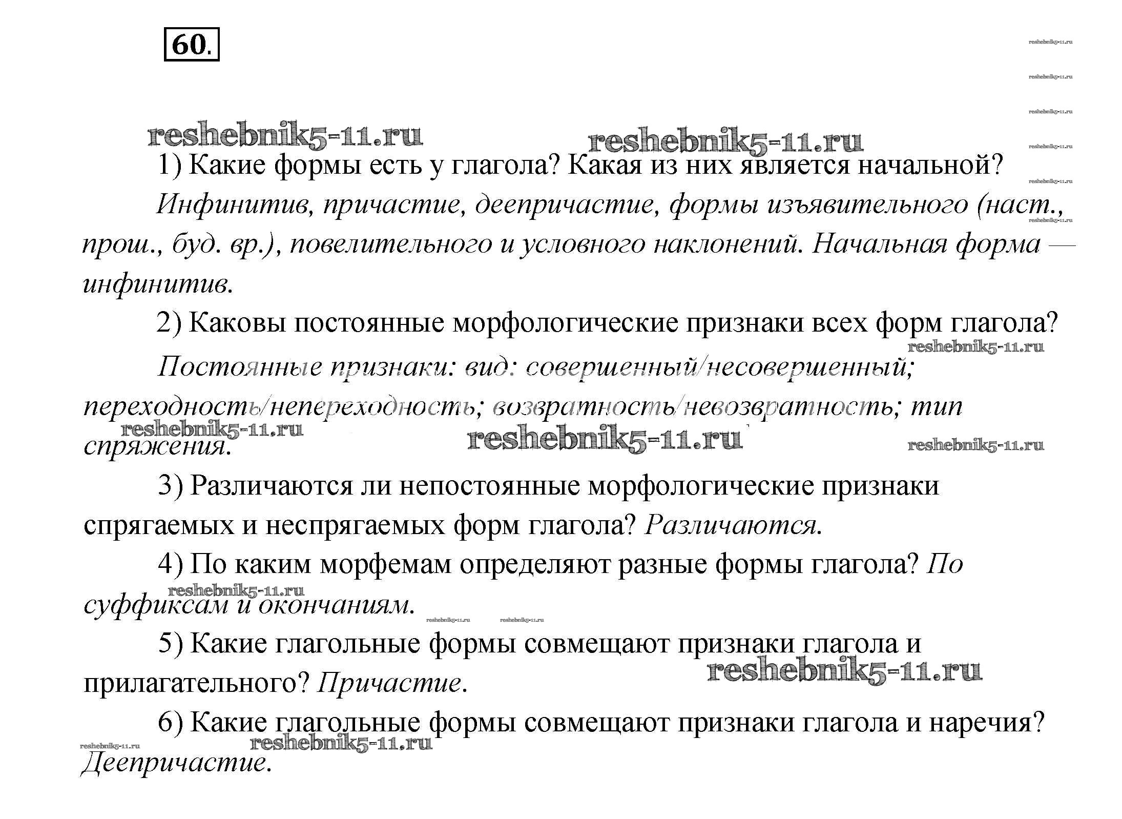 Готовая домашняя работа с ответами по Русскому языку за 7 класс Шмелёв, Флоренская, Савчук, Шмелёва Учебник Алгоритм успеха Вентана-граф 2016 ФГОС - Глава 1 60