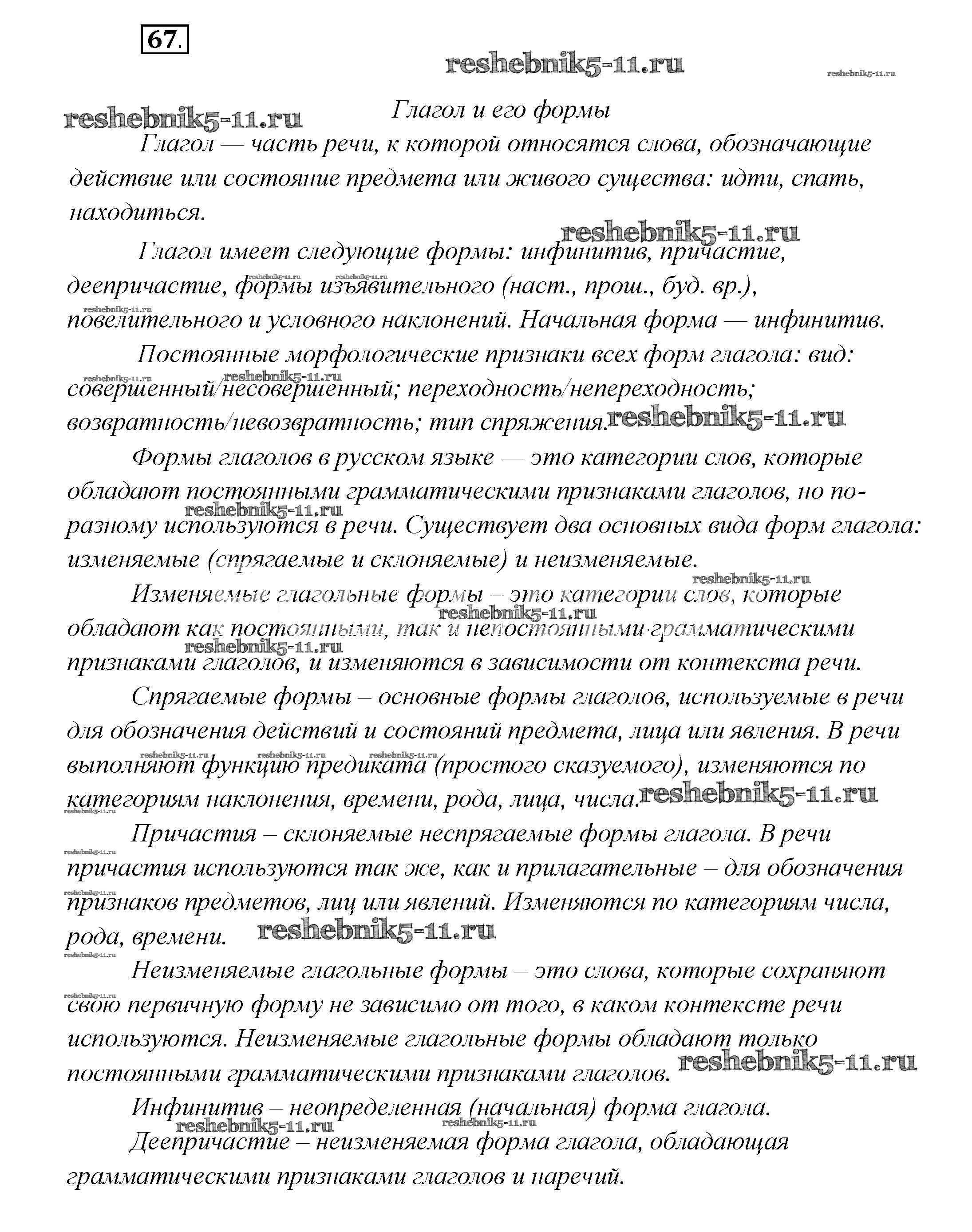 Готовая домашняя работа с ответами по Русскому языку за 7 класс Шмелёв, Флоренская, Савчук, Шмелёва Учебник Алгоритм успеха Вентана-граф 2016 ФГОС - Глава 1 67