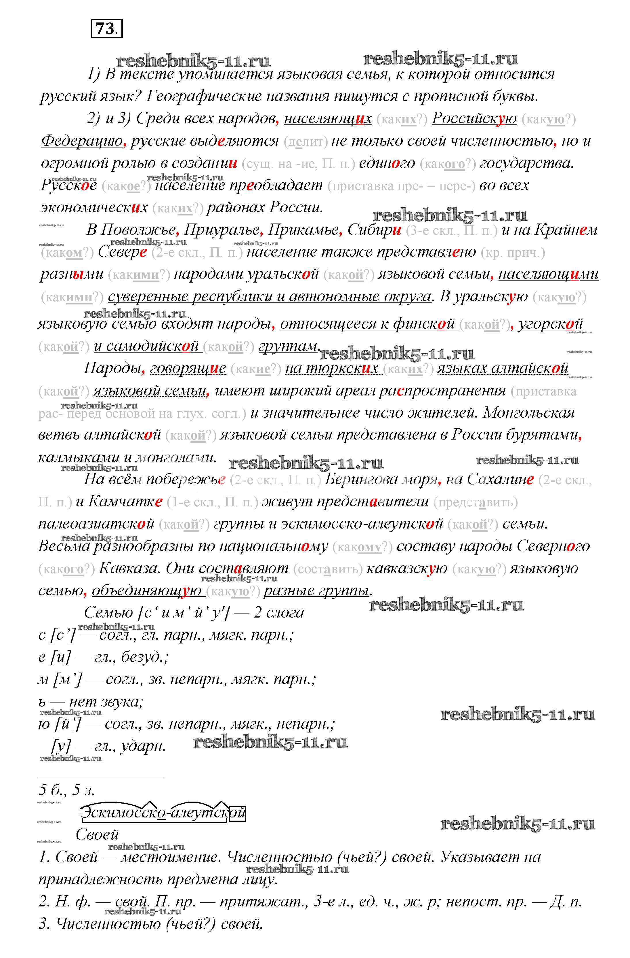 Готовая домашняя работа с ответами по Русскому языку за 7 класс Шмелёв, Флоренская, Савчук, Шмелёва Учебник Алгоритм успеха Вентана-граф 2016 ФГОС - Глава 1 73