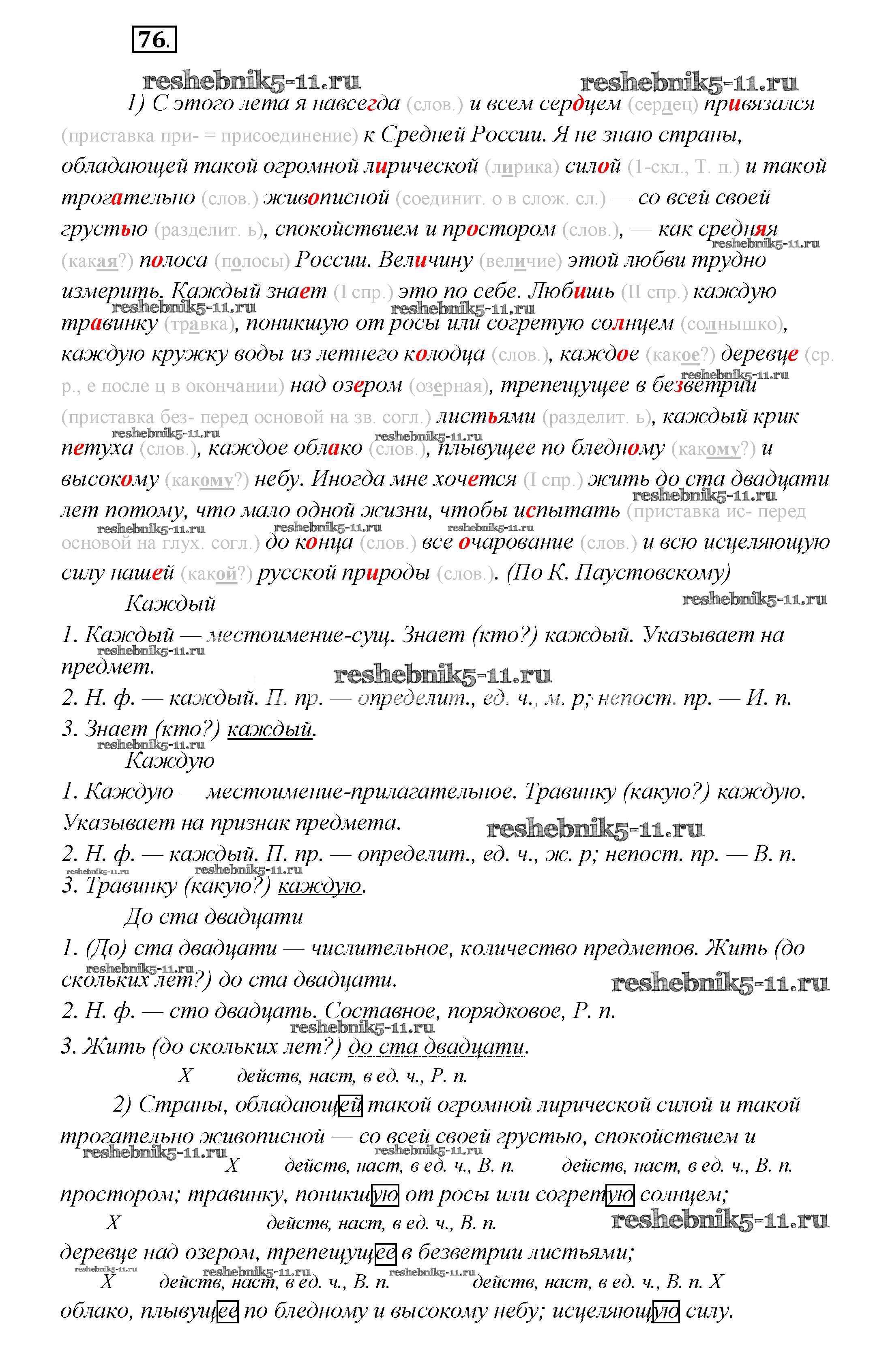 Готовая домашняя работа с ответами по Русскому языку за 7 класс Шмелёв, Флоренская, Савчук, Шмелёва Учебник Алгоритм успеха Вентана-граф 2016 ФГОС - Глава 1 76