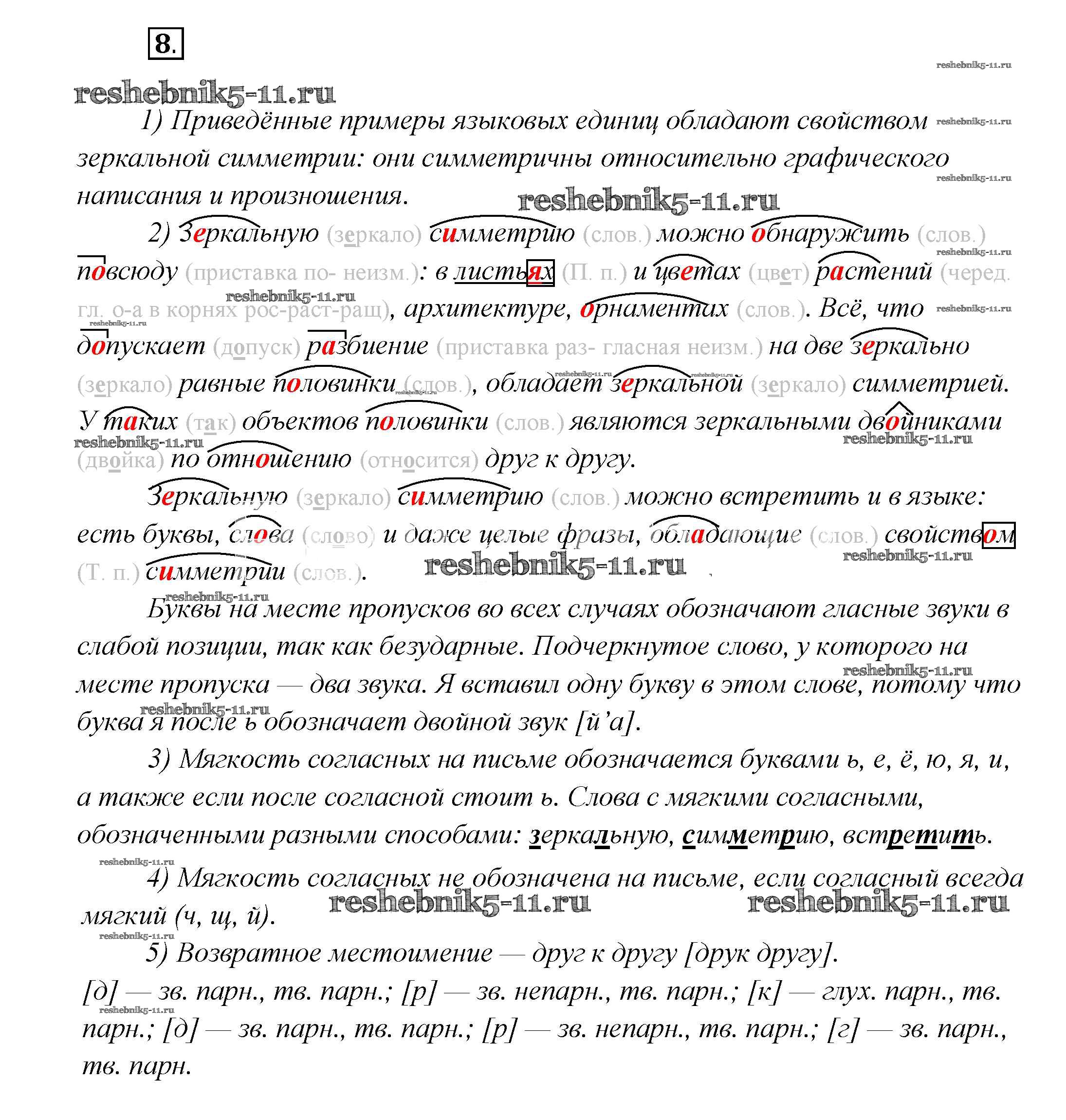 Готовая домашняя работа с ответами по Русскому языку за 7 класс Шмелёв, Флоренская, Савчук, Шмелёва Учебник Алгоритм успеха Вентана-граф 2016 ФГОС - Глава 1 8
