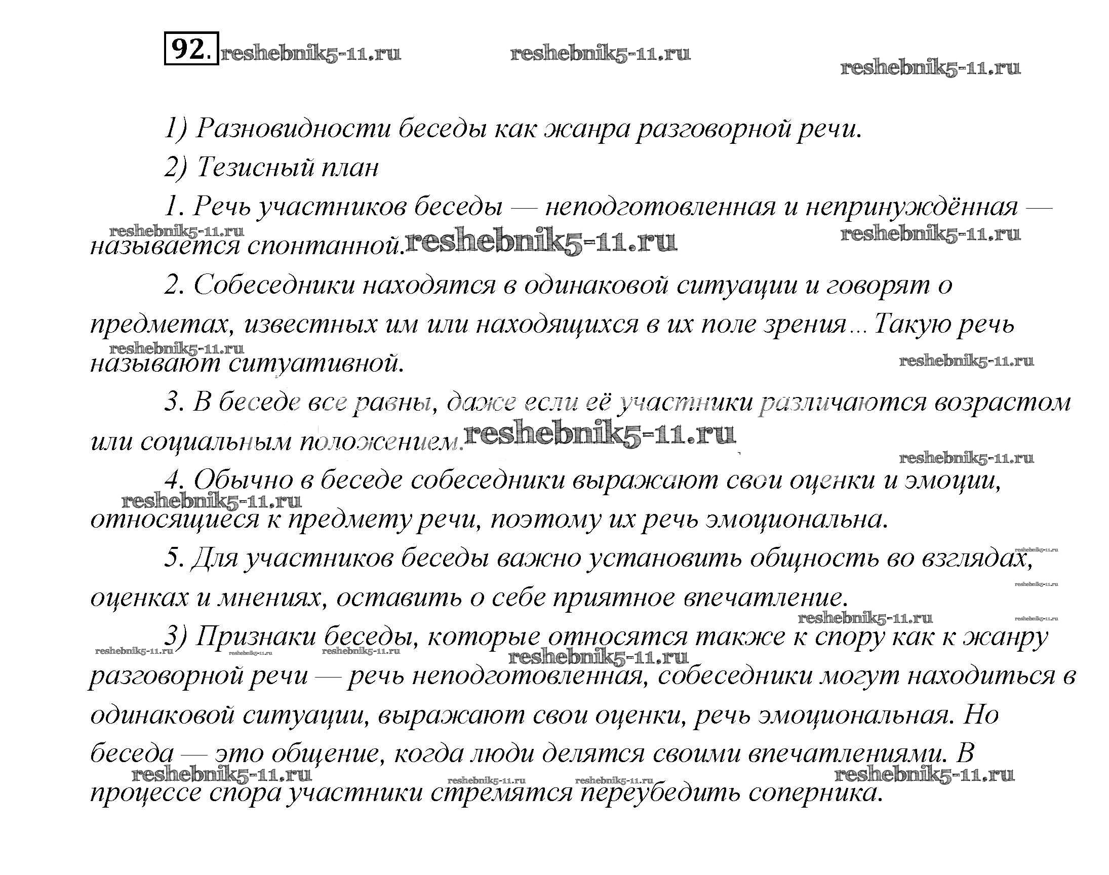Готовая домашняя работа с ответами по Русскому языку за 7 класс Шмелёв, Флоренская, Савчук, Шмелёва Учебник Алгоритм успеха Вентана-граф 2016 ФГОС - Глава 1 92