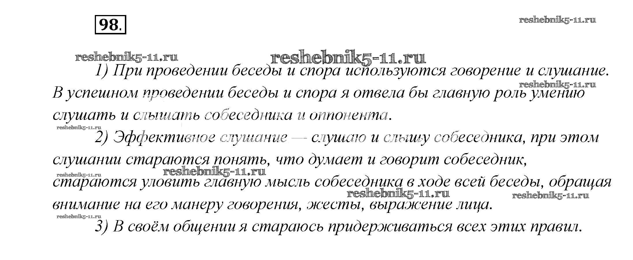 Готовая домашняя работа с ответами по Русскому языку за 7 класс Шмелёв, Флоренская, Савчук, Шмелёва Учебник Алгоритм успеха Вентана-граф 2016 ФГОС - Глава 1 98