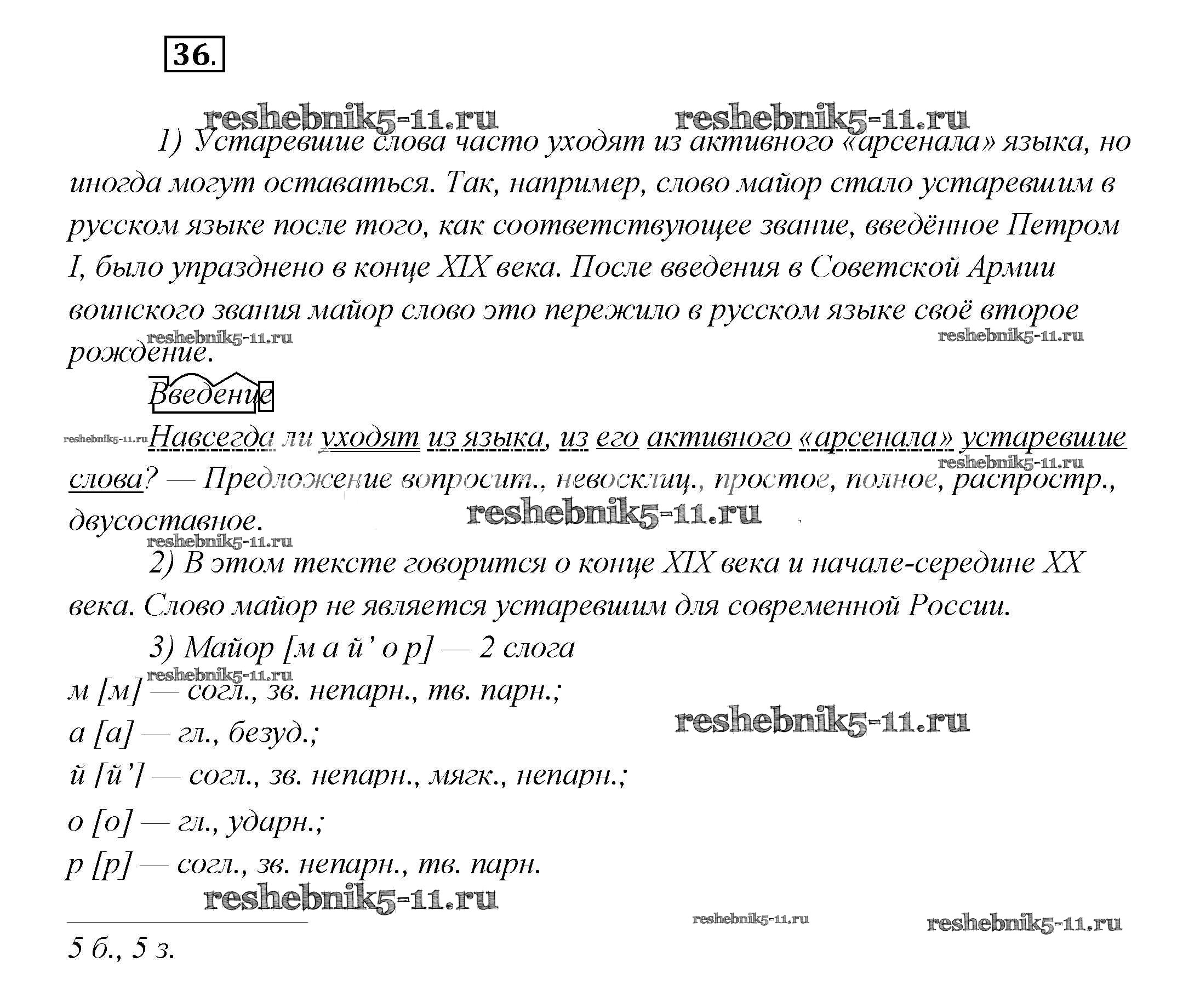 Готовая домашняя работа с ответами по Русскому языку за 7 класс Шмелёв, Флоренская, Савчук, Шмелёва Учебник Алгоритм успеха Вентана-граф 2016 ФГОС - Глава 2 36