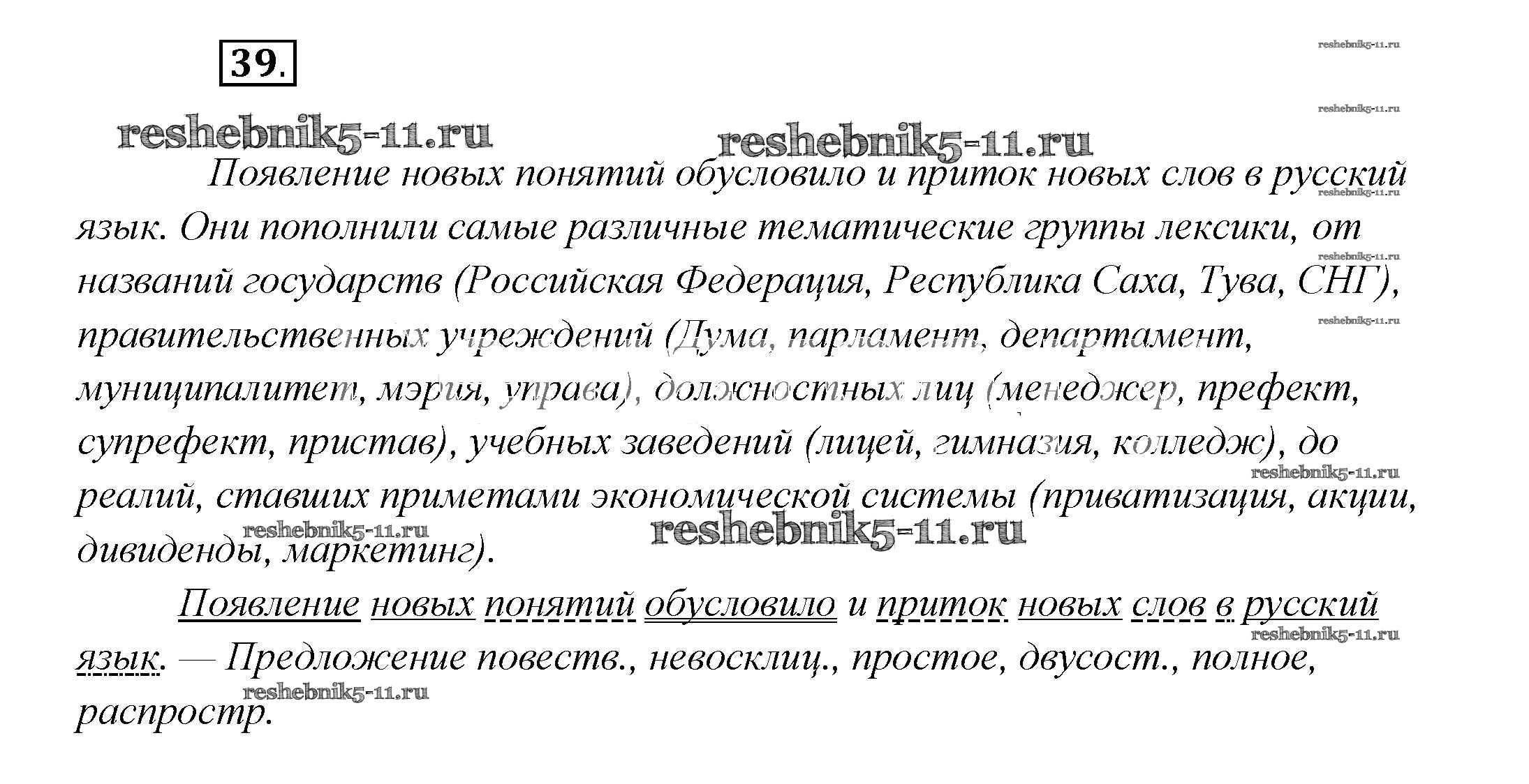 Готовая домашняя работа с ответами по Русскому языку за 7 класс Шмелёв, Флоренская, Савчук, Шмелёва Учебник Алгоритм успеха Вентана-граф 2016 ФГОС - Глава 2 39