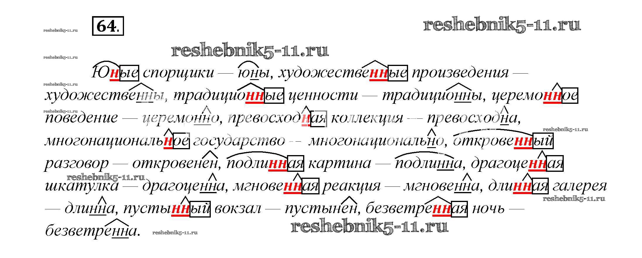 Готовая домашняя работа с ответами по Русскому языку за 7 класс Шмелёв, Флоренская, Савчук, Шмелёва Учебник Алгоритм успеха Вентана-граф 2016 ФГОС - Глава 2 64