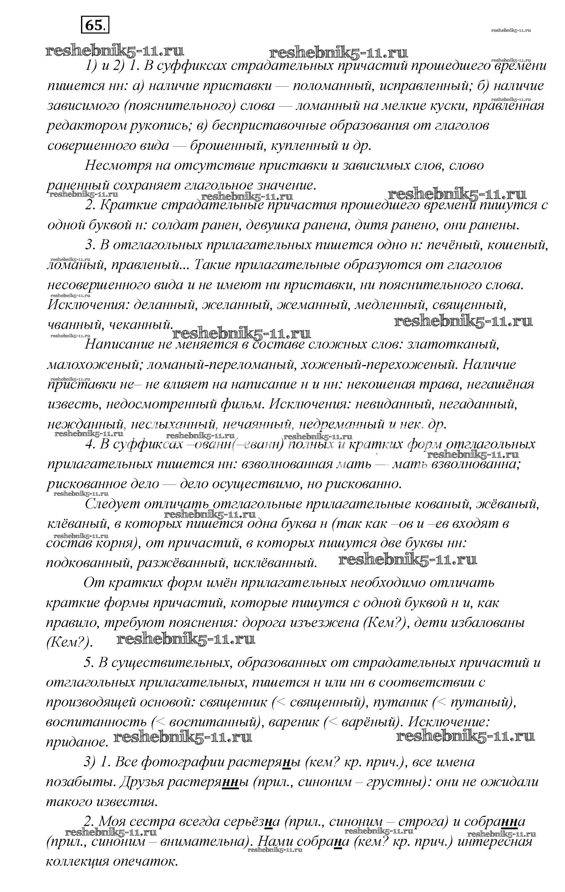 Готовая домашняя работа с ответами по Русскому языку за 7 класс Шмелёв, Флоренская, Савчук, Шмелёва Учебник Алгоритм успеха Вентана-граф 2016 ФГОС - Глава 2 65