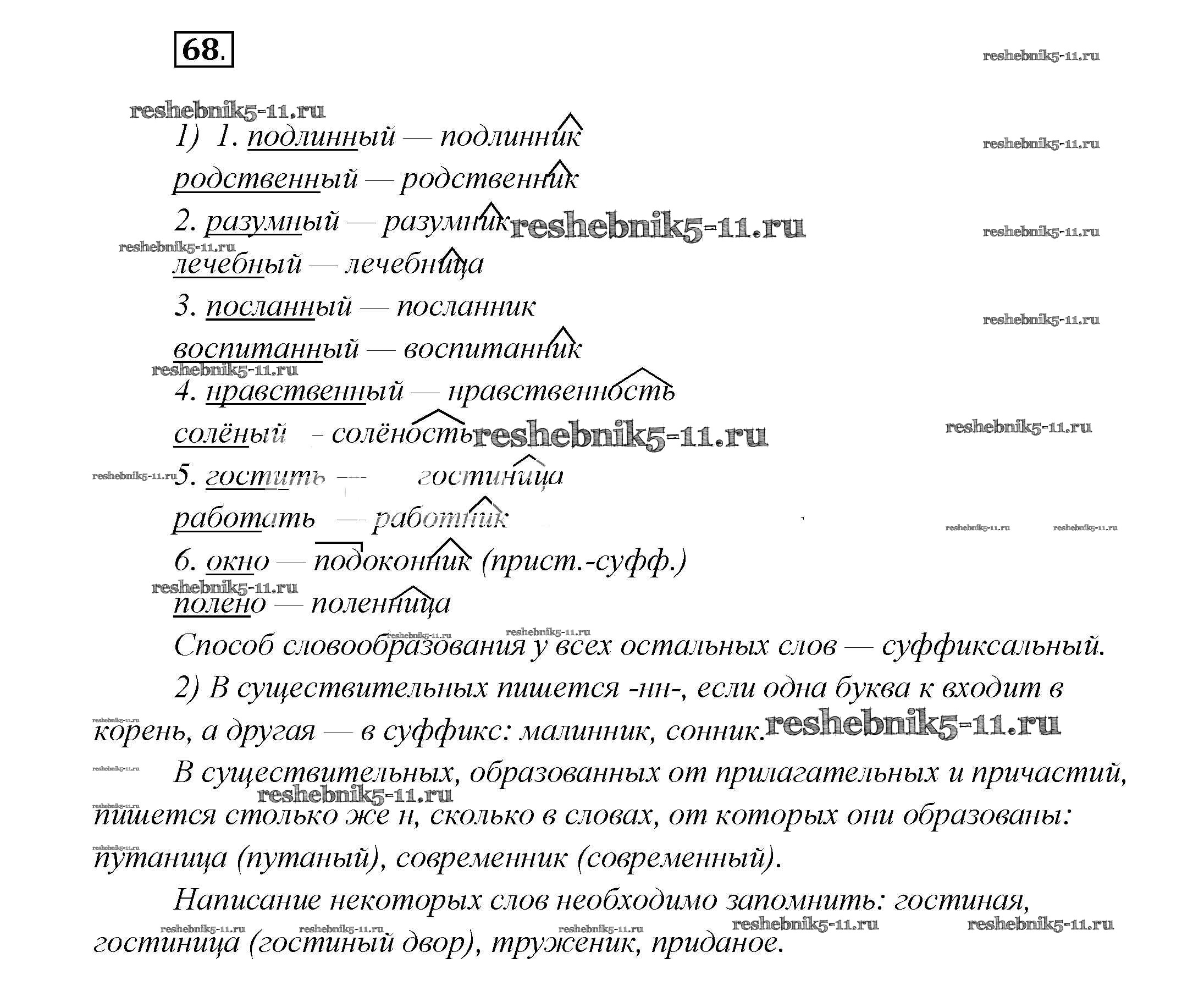 Готовая домашняя работа с ответами по Русскому языку за 7 класс Шмелёв, Флоренская, Савчук, Шмелёва Учебник Алгоритм успеха Вентана-граф 2016 ФГОС - Глава 2 68