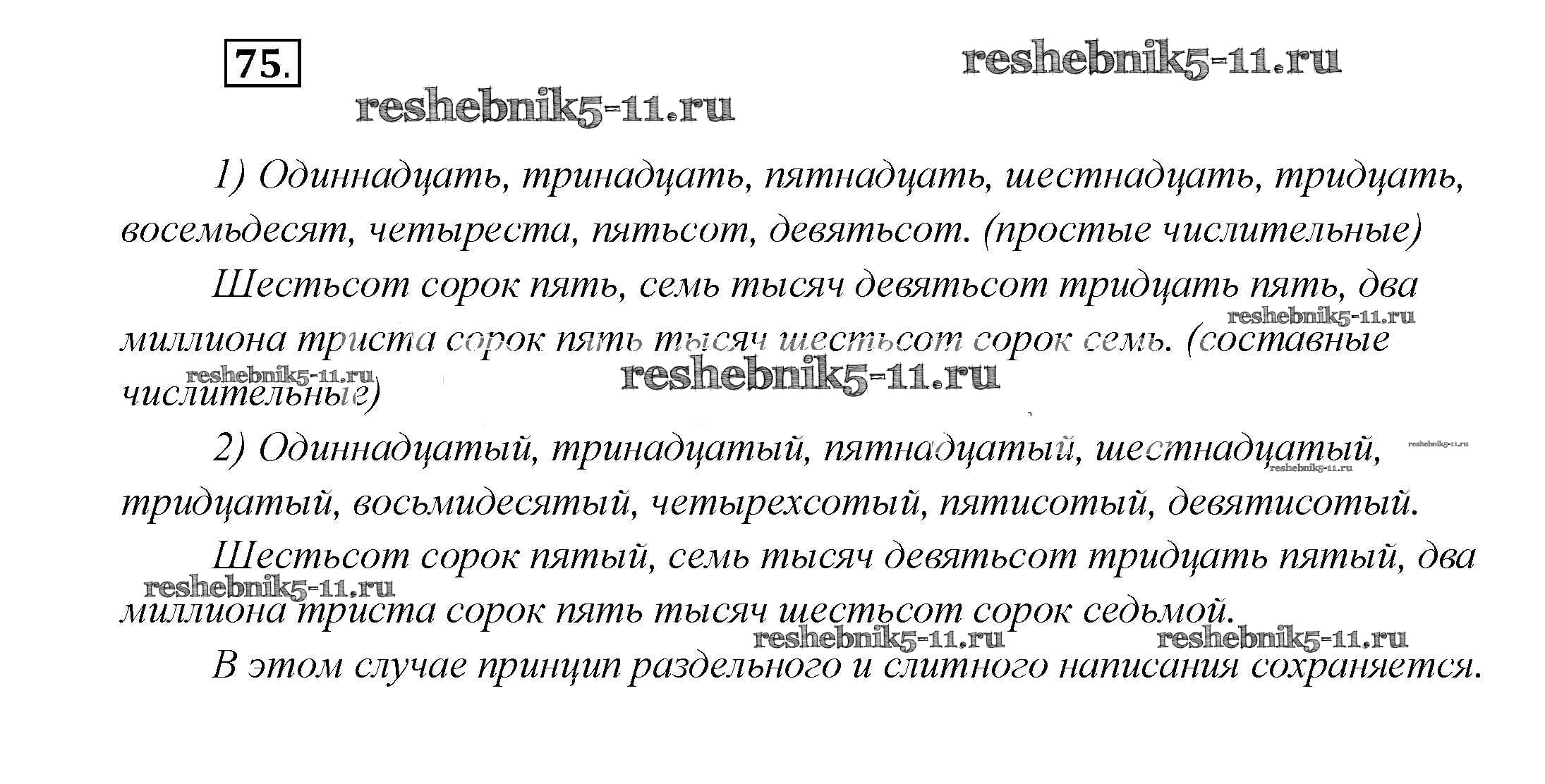 Готовая домашняя работа с ответами по Русскому языку за 7 класс Шмелёв, Флоренская, Савчук, Шмелёва Учебник Алгоритм успеха Вентана-граф 2016 ФГОС - Глава 2 75