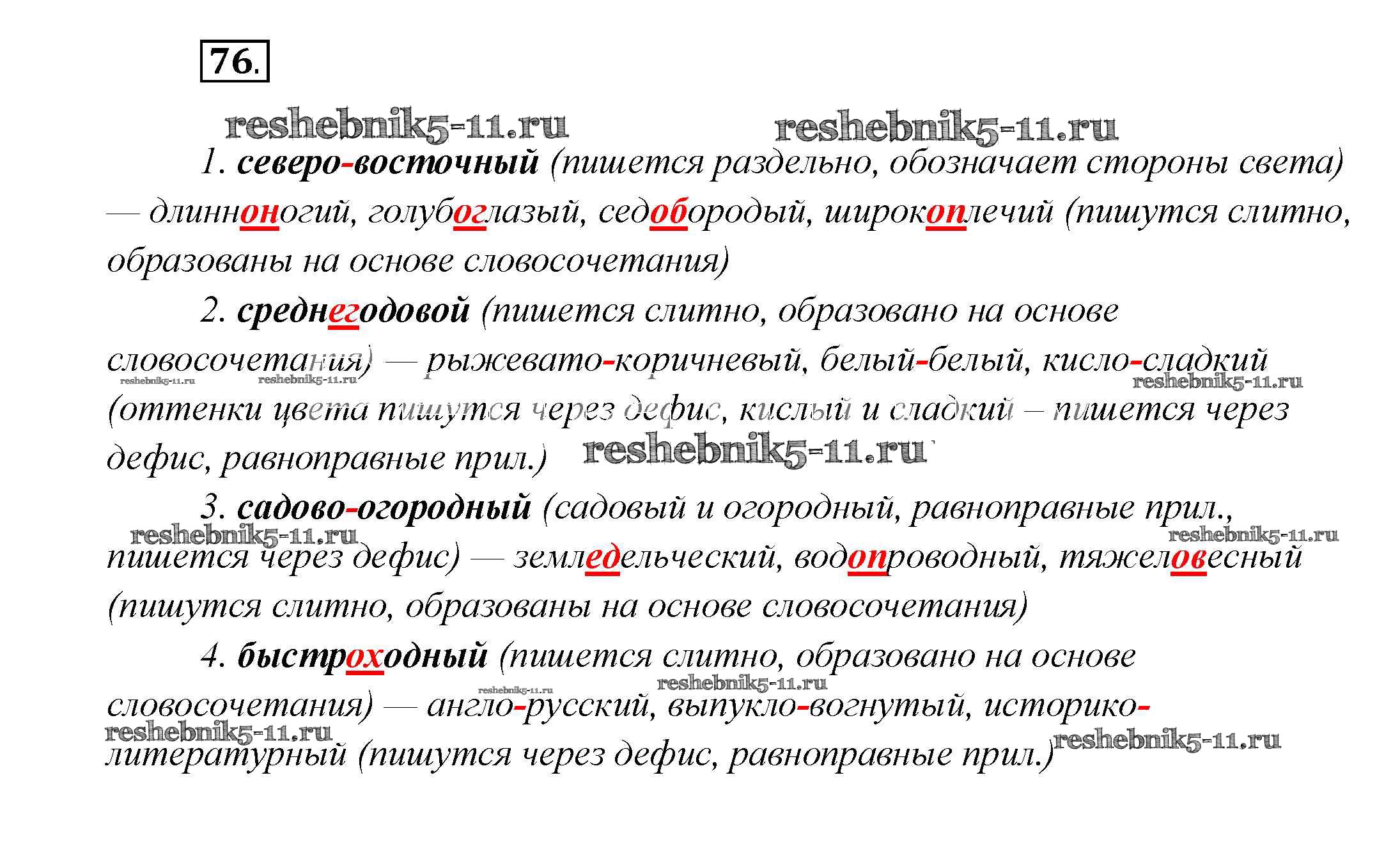 Готовая домашняя работа с ответами по Русскому языку за 7 класс Шмелёв, Флоренская, Савчук, Шмелёва Учебник Алгоритм успеха Вентана-граф 2016 ФГОС - Глава 2 76