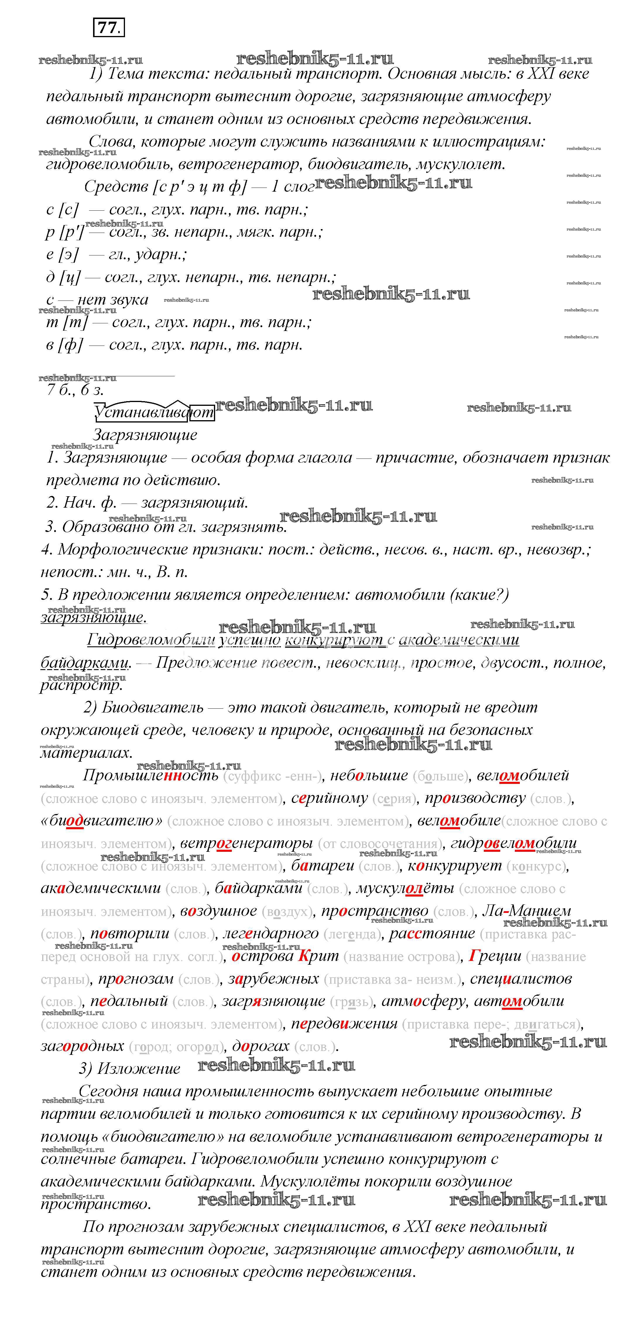 Готовая домашняя работа с ответами по Русскому языку за 7 класс Шмелёв, Флоренская, Савчук, Шмелёва Учебник Алгоритм успеха Вентана-граф 2016 ФГОС - Глава 2 77