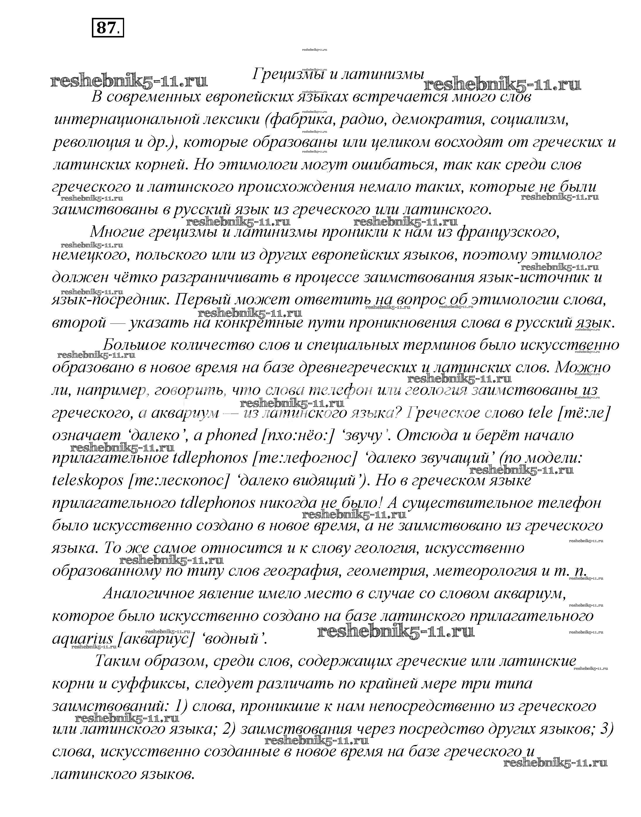 Готовая домашняя работа с ответами по Русскому языку за 7 класс Шмелёв, Флоренская, Савчук, Шмелёва Учебник Алгоритм успеха Вентана-граф 2016 ФГОС - Глава 2 87