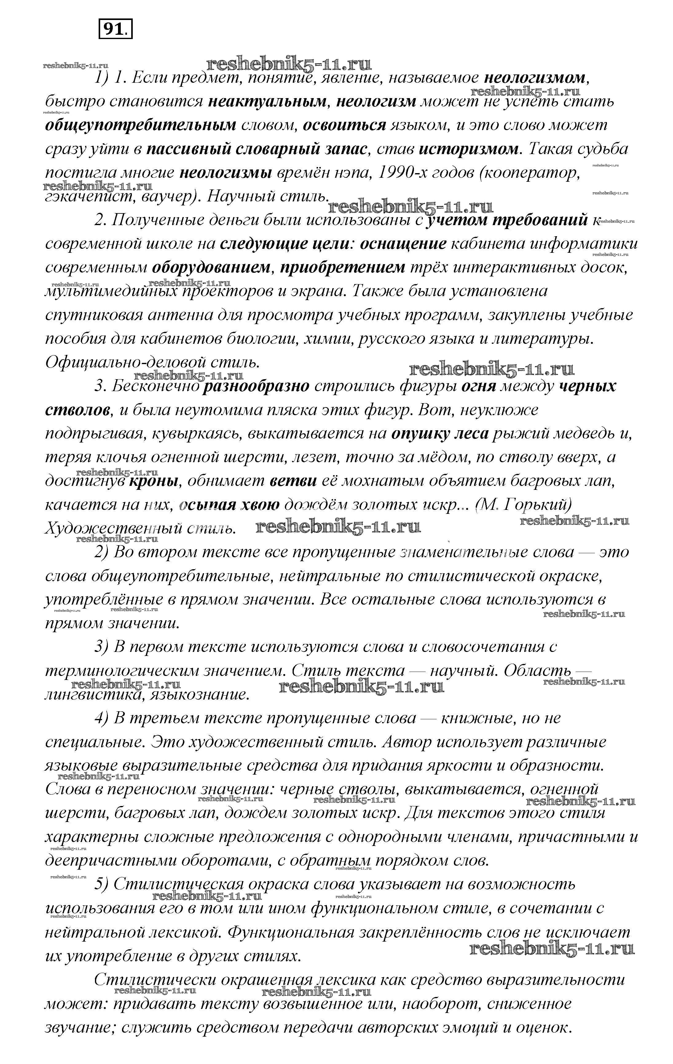 Готовая домашняя работа с ответами по Русскому языку за 7 класс Шмелёв, Флоренская, Савчук, Шмелёва Учебник Алгоритм успеха Вентана-граф 2016 ФГОС - Глава 2 91