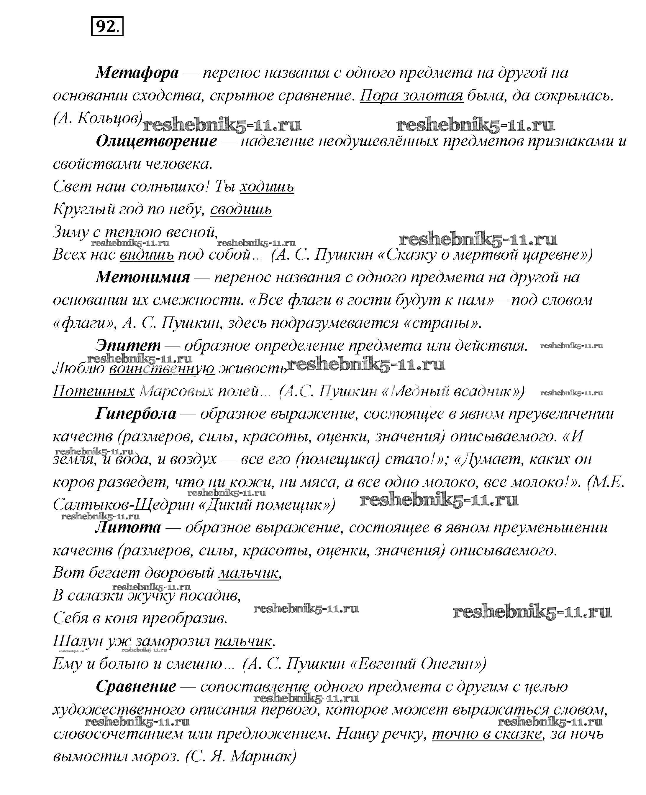 Готовая домашняя работа с ответами по Русскому языку за 7 класс Шмелёв, Флоренская, Савчук, Шмелёва Учебник Алгоритм успеха Вентана-граф 2016 ФГОС - Глава 2 92