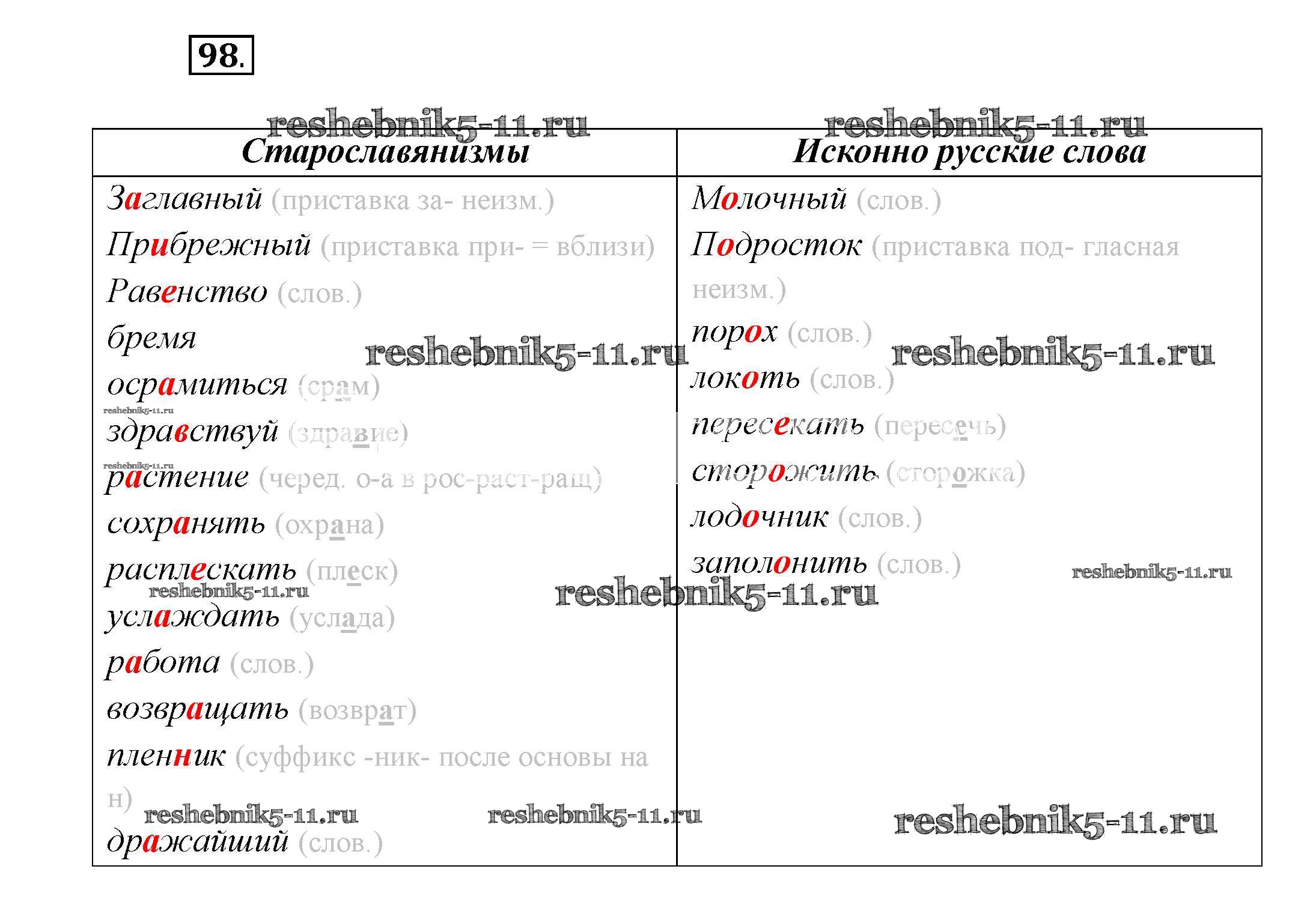 Готовая домашняя работа с ответами по Русскому языку за 7 класс Шмелёв, Флоренская, Савчук, Шмелёва Учебник Алгоритм успеха Вентана-граф 2016 ФГОС - Глава 2 98