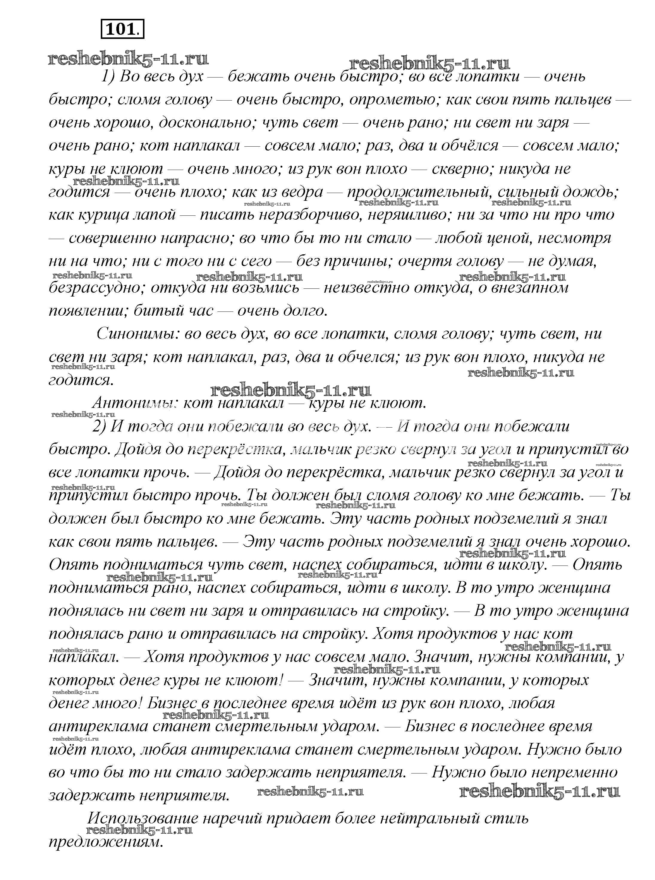 Готовая домашняя работа с ответами по Русскому языку за 7 класс Шмелёв, Флоренская, Савчук, Шмелёва Учебник Алгоритм успеха Вентана-граф 2016 ФГОС - Глава 3 101