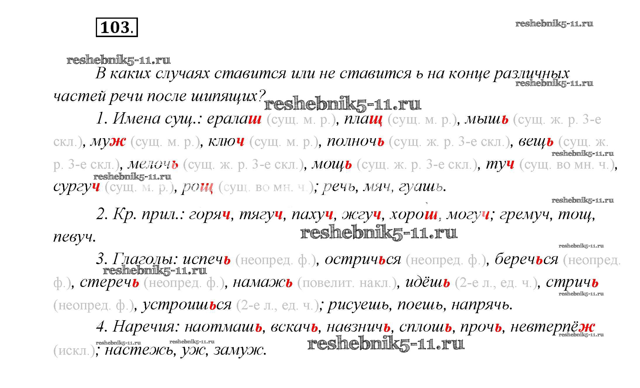 Готовая домашняя работа с ответами по Русскому языку за 7 класс Шмелёв, Флоренская, Савчук, Шмелёва Учебник Алгоритм успеха Вентана-граф 2016 ФГОС - Глава 3 103