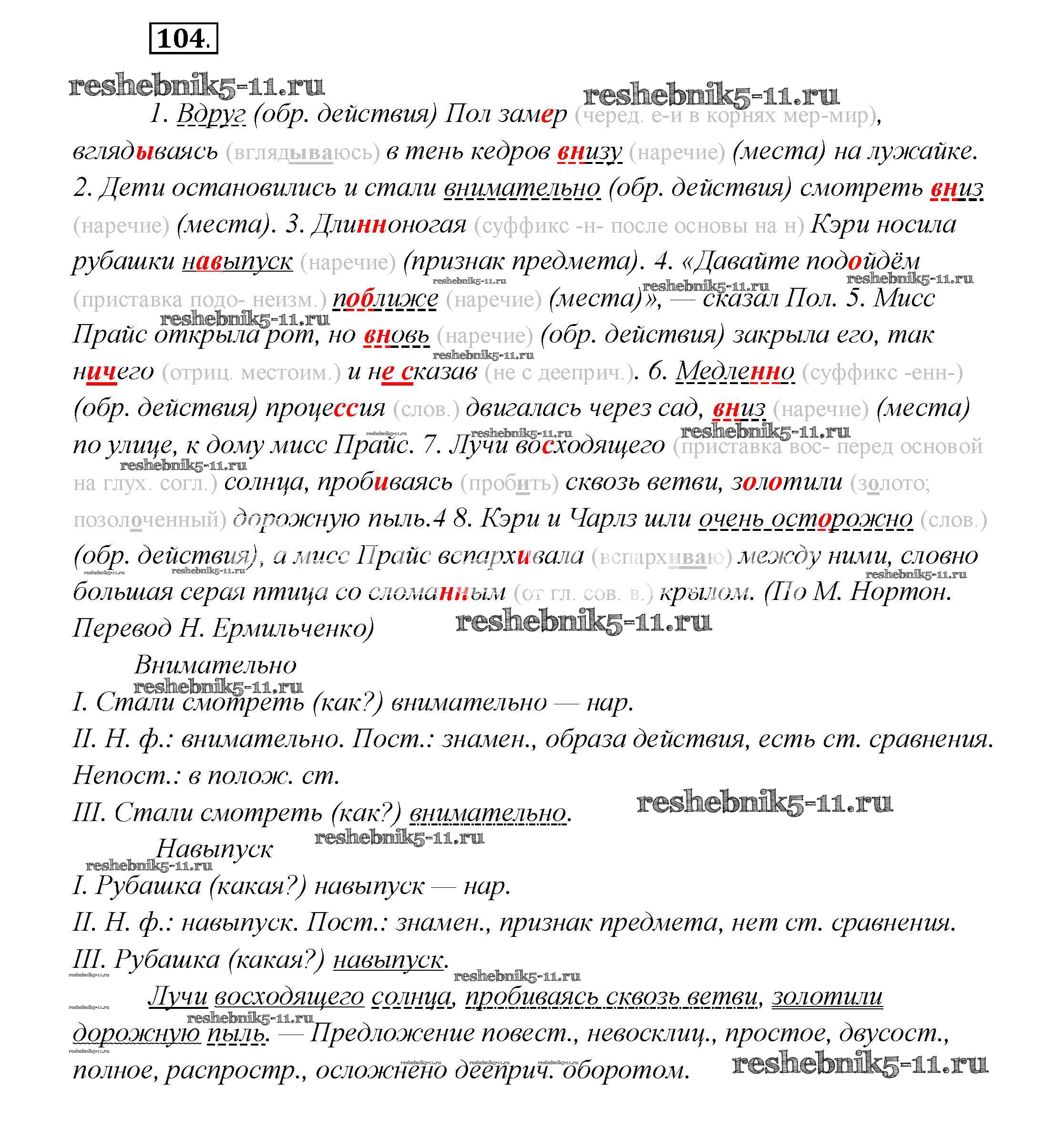 Готовая домашняя работа с ответами по Русскому языку за 7 класс Шмелёв, Флоренская, Савчук, Шмелёва Учебник Алгоритм успеха Вентана-граф 2016 ФГОС - Глава 3 104